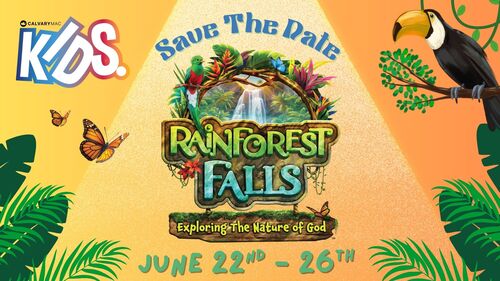 Join us for Rainforest Falls: Exploring the Nature of God, a fun-filled Vacation Bible School where kids will discover God’s love through exciting activities, engaging Bible lessons, music, games, and rainforest-themed adventures!
